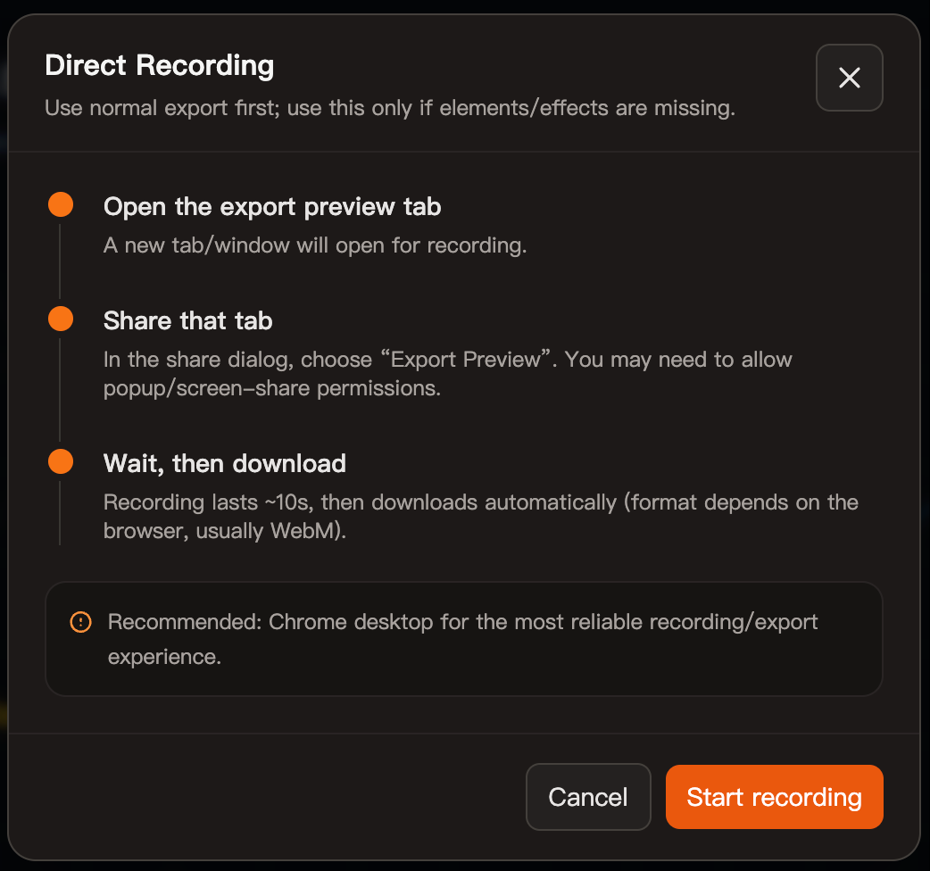 This export method ensures what you see in the browser is exactly what you get in the exported video. It is a true WYSIWYG approach.