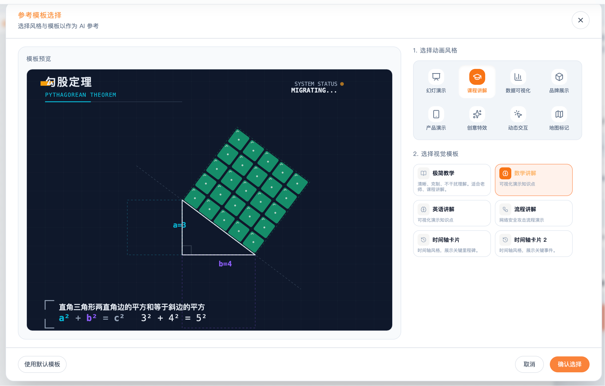 比如选择课程讲解里面的数学讲解这个模板: